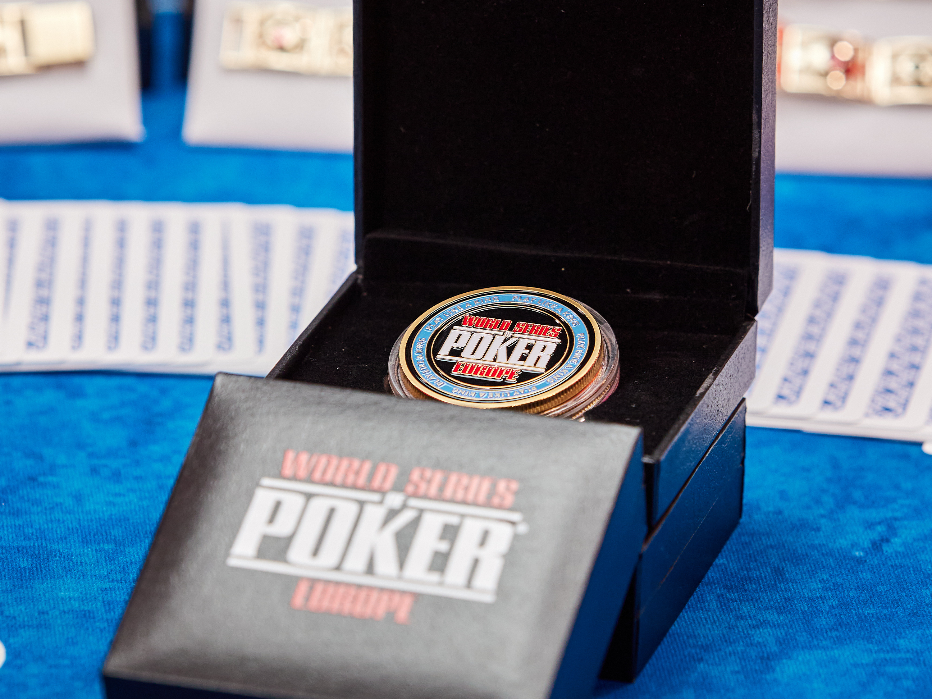 WSOPE Card Protector Coin protects your best hands and shows to other players the prestigious series you have participated.